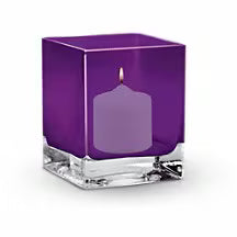 Hot pink roses, dark red spray roses, purple carnations and pink miniature carnations are accented with assorted greens. Delivered in Teleflora's glass violet cube.